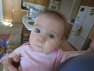 You've been going through a growth spurt recently, but you haven't really grown much at all little lady! You're still a very petite little girl, weighing probably just over 16 pounds. You're wearing 6 month clothes and don't seem to be needing anything else anytime soon. The funny thing about all of it is that your feet are as big as your brother's!! I wonder if you're going to go through some sort of crazy growth spurt at some point and shock us all. For now, I'm happy with my tiny little princess.